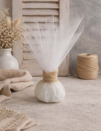 Χειροποίητη μπομπονιέρα γάμου με τούλι κόμπο