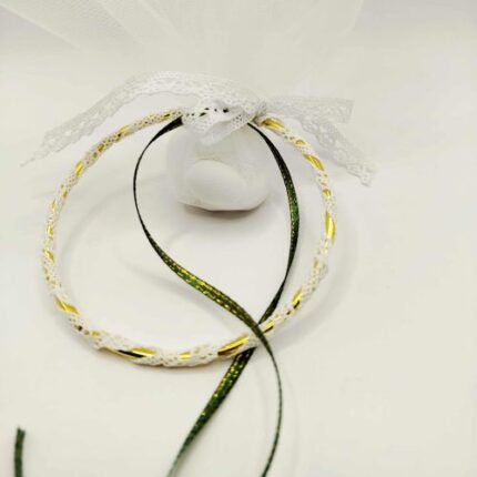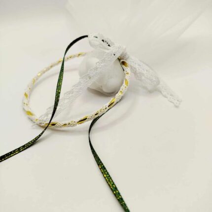 Μπομπονιέρα γάμου με χρυσό κρίκο και δαντέλα