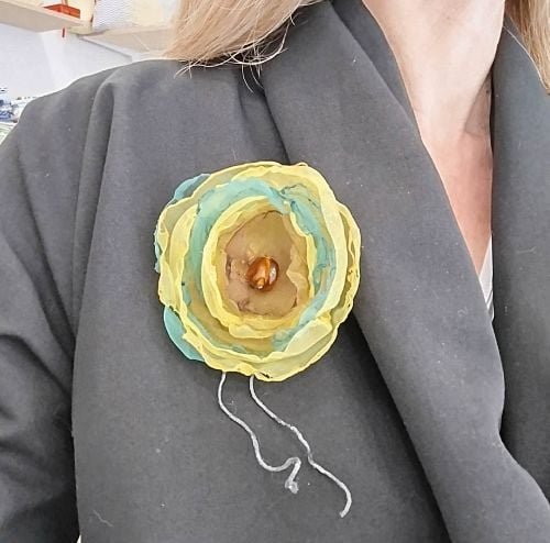 Λαμπαδάκι με χειροποίητη καρφίτσα καμέλια για μεγάλα και μικρά κορίτσια. Φτιαγμένη εξ ολοκλήρου στο χέρι, η μπουτουνιέρα-καρφίτσα έχει διάμετρο περίπου 10 εκ., με κούμπωμα ασφαλείας και ασορτί κορδελίτσες. Κάθε μία είναι μοναδική και δεν είναι ίδια με την άλλη.