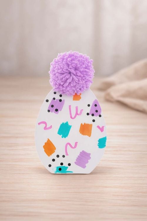 Μοντέρνο κεραμικό πασχαλινό αυγό ζωγραφισμένο στο χέρι, για πρωτότυπες διακοσμήσεις. Με ζωηρά χρώματα και μια φούντα στην κορυφή ξεχωρίζει στο χώρο σας και εντυπωσιάζει ως δώρο σε φίλους και συνεργάτες.