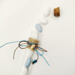 Χειροποίητη μπομπονιέρα βάπτισης για αγόρι δοκιμαστικός σωλήνας με κουφέτα δύο αποχρώσεων και θαλασσινό στολισμό.