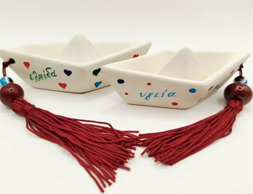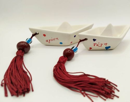 Πολύχρωμο κεραμικό καραβάκι με ευχή.
