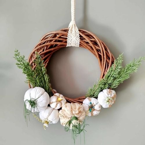 Χειροποίητο χριστουγεννιάτικο στεφάνι με κολοκύθες