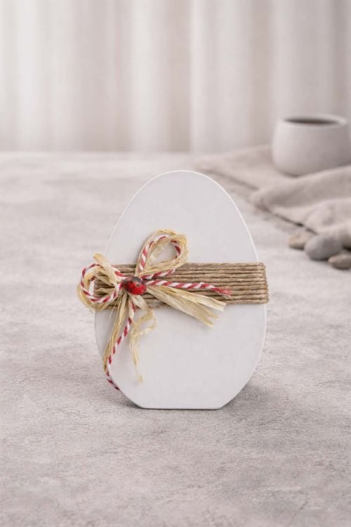 Ξύλινο διακοσμητικό πασχαλινό αυγό σε κόκκινες και λευκές αποχρώσεις. Ιδανικό για εποχιακή διακόσμηση ή δώρο.